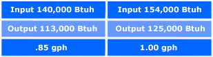 This means that at the lower rating, the furnace is capable of producing 113,000 BTU's of usable heat per hour to heat your home. And, if it ran constantly for one hour, it would consume .85 gallons of oil. If, however, your dealer sets up your oil furnace to operate at the higher rating, it would produce 125,000 BTU's of usable heat per hour, and use 1.00 gallons of oil. Whether your oil furnace is set up by your dealer to operate at the higher or lower rating depends on that all important Load Calculation. By properly sizing the furnace to your home, you will be assured of maximum comfort, energy savings and extended equipment life.